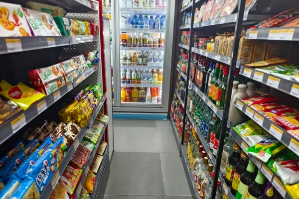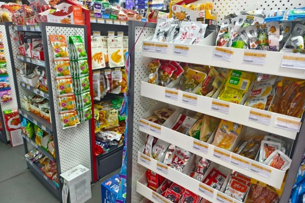 饮料区、零食区、鲜食区、调味料区等不同区域分区陈列。除此以外,还得根据不同品类下的品牌分区陈列。
